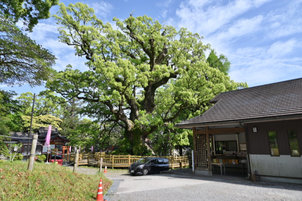 本日の宿へ向かって国道10号を北上していると”日本一の巨樹”の看板を発見。