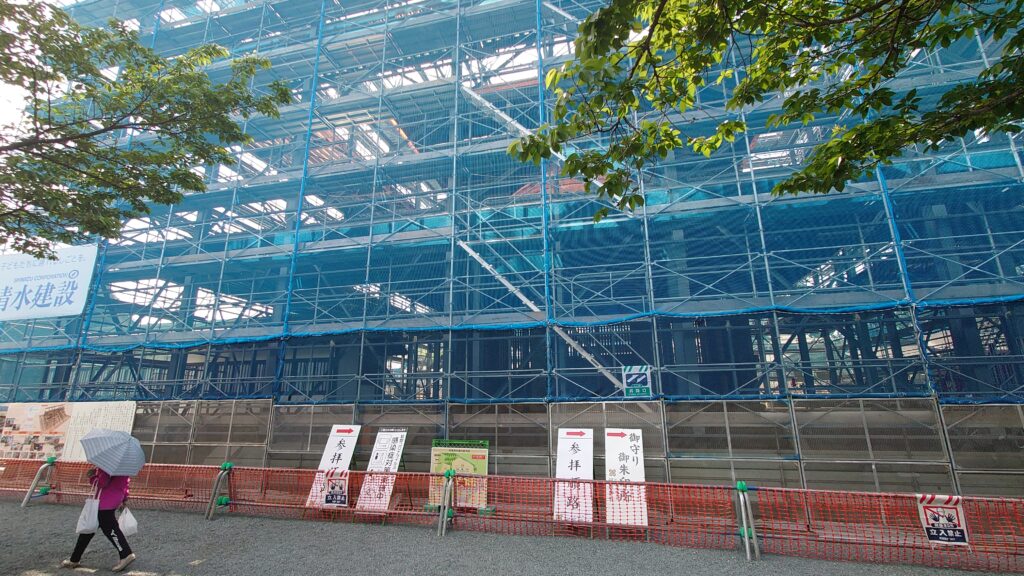 足場越しですが形が見える状態でした。