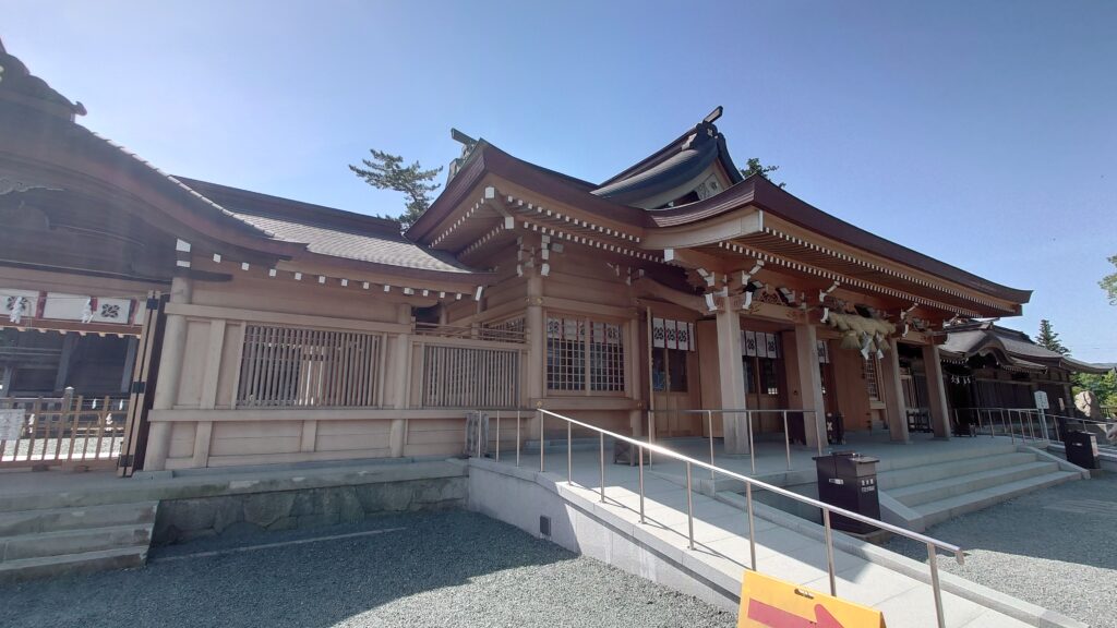 こちらの神社は熊本地震の際に多くの建物が倒壊してしまったそうで、拝殿も一昨年復旧が完了したばかりできれいな見た目をしていました。