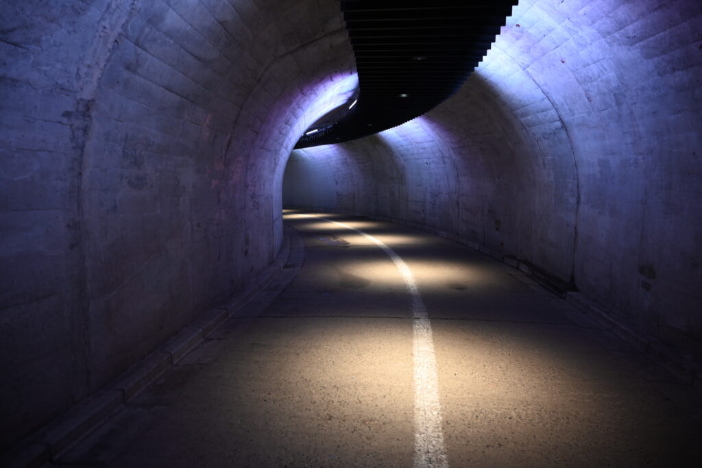 観瀑台まではトンネルになっていますが洞内を照らす照明がオシャレな気がします。