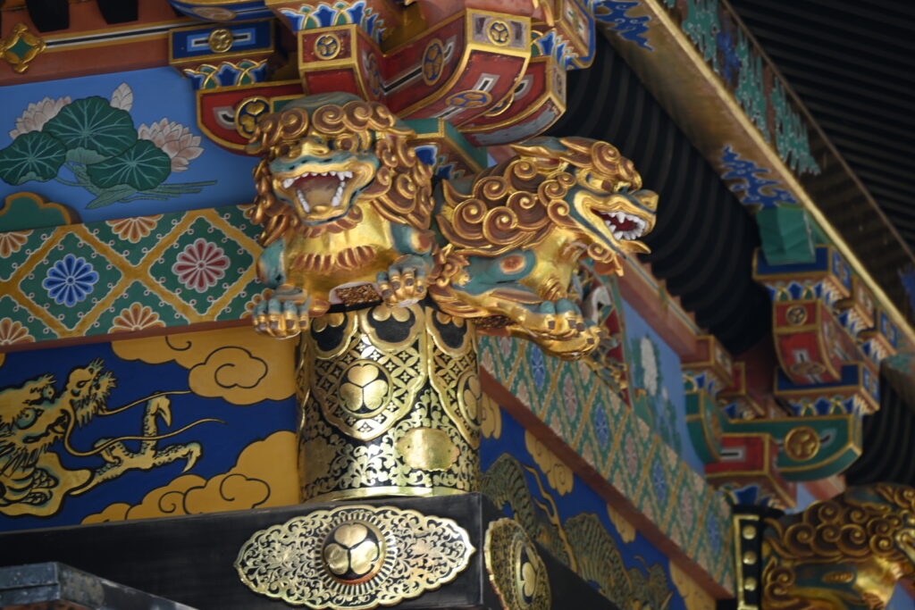 日光と同様豪華絢爛な雰囲気ですが、こちらは朱と黒をベースに極採色の塗装が施されています。