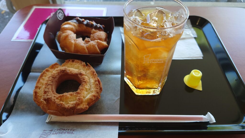 雲一つ無い快晴の為とても暑いので休憩ついでにミスドでおやつにします。
