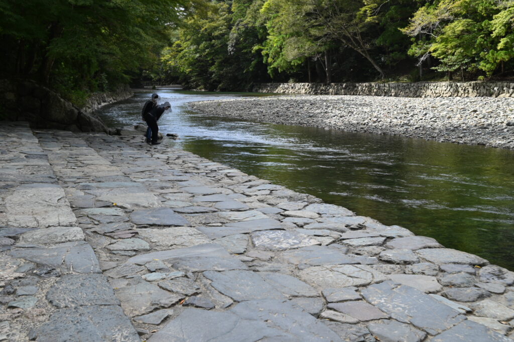内宮は五十鈴川の川沿いに参道があり、途中五十鈴川で手を洗える御手洗場も設けられています。